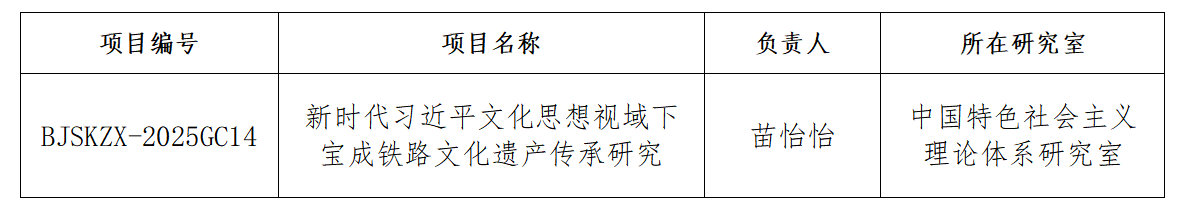 近日,宝鸡市社会科学界联合会发布《关于宝鸡重大工程建设(社会主义建设时期)文化遗产传承专项课题立项的通知》,中特中心骨干研究员苗怡怡博士主持的《新时代习近平文化思想视域下宝成铁路文化遗产传承研究》成功立项。