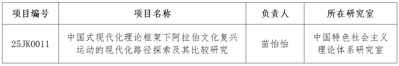 近日,陕西省教育厅发布了《关于印发2025年度科研计划的通知》(陕教函〔2025〕1131号),中特中心骨干研究员苗怡怡博士负责的《中国式现代化理论框架下阿拉伯文化复兴运动的现代化路径探索及其比较研究》获准人文社会科学专项立项,项目经费1万元。